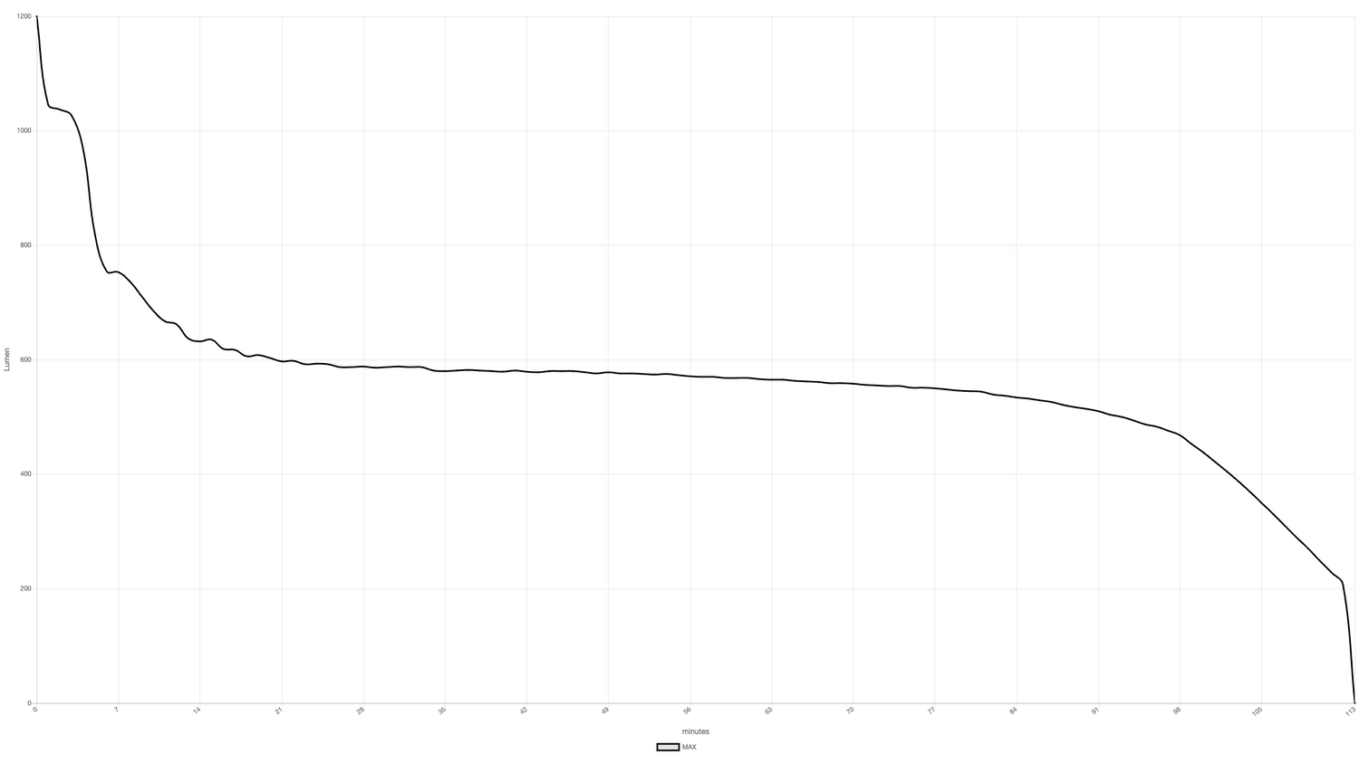 | Lichtstrom (Stufenmodus): | Hoch: 1100 lm / Mittel: 500 lm / Niedrig: 200 |
