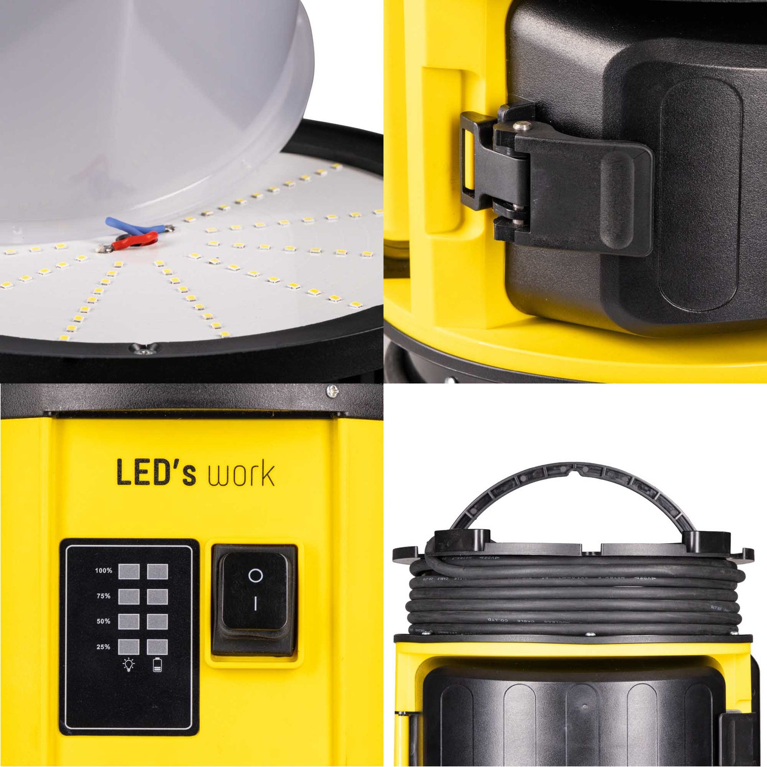Hybrid 360° Arbeitsleuchte - 80W 12000 Lumen - IP54 - Baustellentauglich, 500cm Kabel oder Akku - 0310743