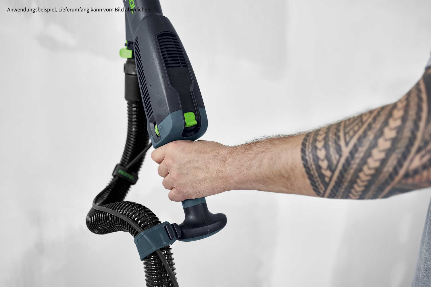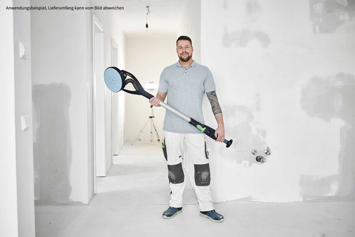 Der PLANEX M ist der Allrounder unter unseren Langhalsschleifern. Aus der Transporttasche auspacken, anschalten und loslegen. Mit der exzentrischen Schleifbewegung erzielt ihr dabei hochwertige Oberflächen im Wand- und Deckenbereich. Für ermüdungsarme Schleifarbeiten an Wand und Decke sorgt die regulierbare Ansaugung – zur Entlastung von Armen und Rücken. Die Arbeitslänge von 1,4 m ist dabei ideal für alle Standardraumhöhen. Mit dem praktischen T-Griff ist sogar eine erhöhte Reichweite möglich.