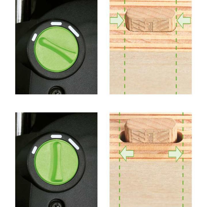 Einer der großen Zeitvorteile beim Arbeiten mit der DOMINO Dübelfräse ergibt sich durch das Arbeiten ohne aufwändiges Messen oder Anzeichnen – die schnelle und exakte Positionierung erfolgt bei der DOMINO DF 500 ganz einfach durch Anschlagklinken.