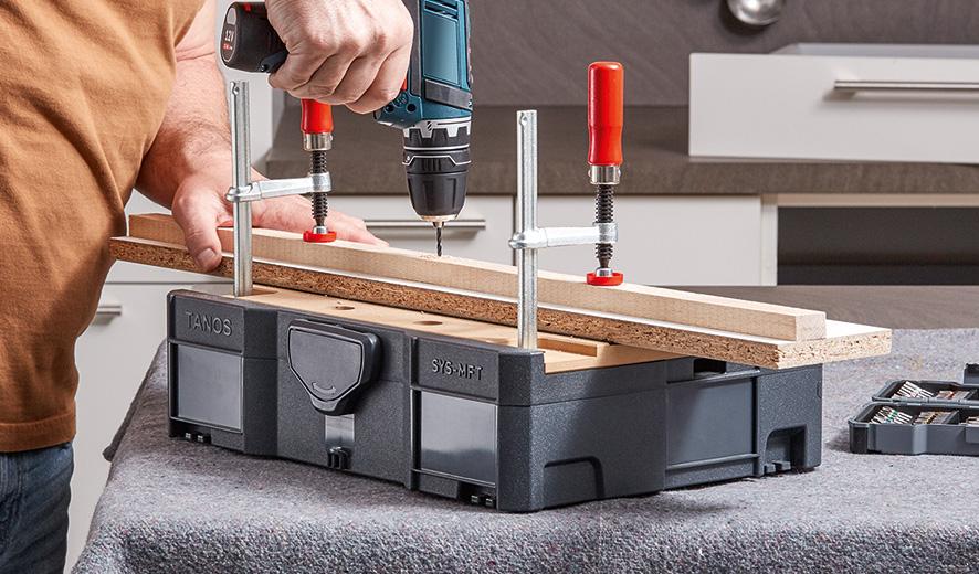 Multifunktionaler Systainer für Montagetechniker Mit Holzeinlage inkl. 20er-Bohrung Und 3 verschiedenen Spannmöglichkeiten