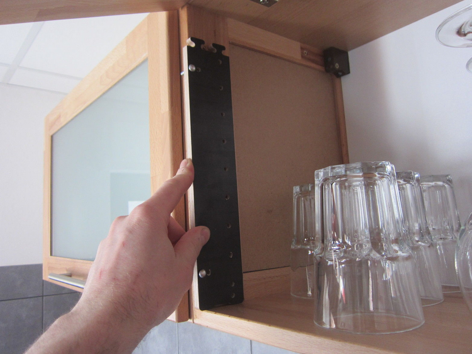 Unser Ziel war es ein sehr preiswertes Produkt anzubieten, das nur selten oder für einige Projekte benutzt wird und irgendwann einfach entsorgt wird, als alternative zur hochwertigen Bohrlehre die irgendwann nur noch an der Wand hängt. Auf eine Tiefenbegrenzung des Bohrers wurde komplett verzichtet. Das besondere der Bohrlehre ist dass sie in der Mitte zusammengesteckt ist und dadurch perfekt gerüstet ist um fertige vorhandene Schranke oder Regale mit Lochreihen nachzurüsten.