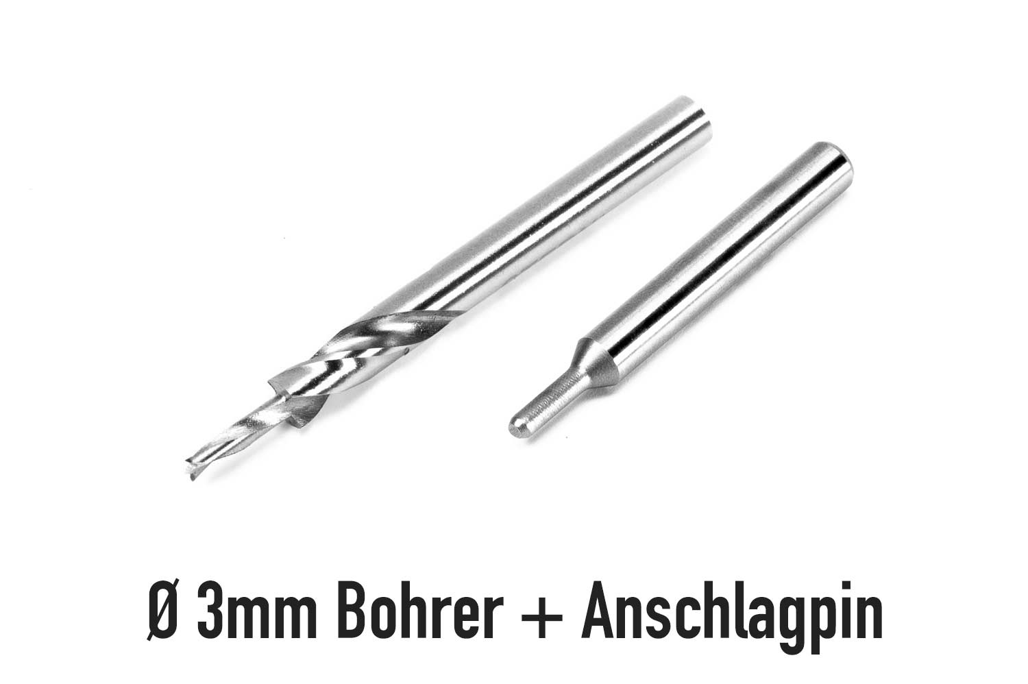 SET: Ø 3mm Regalbodenträger-Bohrer & Anschlagpin für KREG® Bohrschablone KMA3220 bzw. KMA3232
