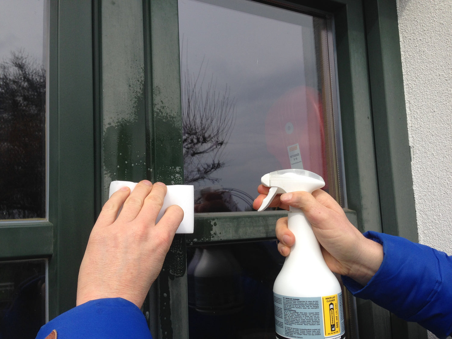 - Bei starker Verschmutzung 1-2 Min. einwirken lassen (Achtung: Auf Kunstglas, Hochglanzlacken oder empfindlichen Oberflächen nicht einwirken lassen)
