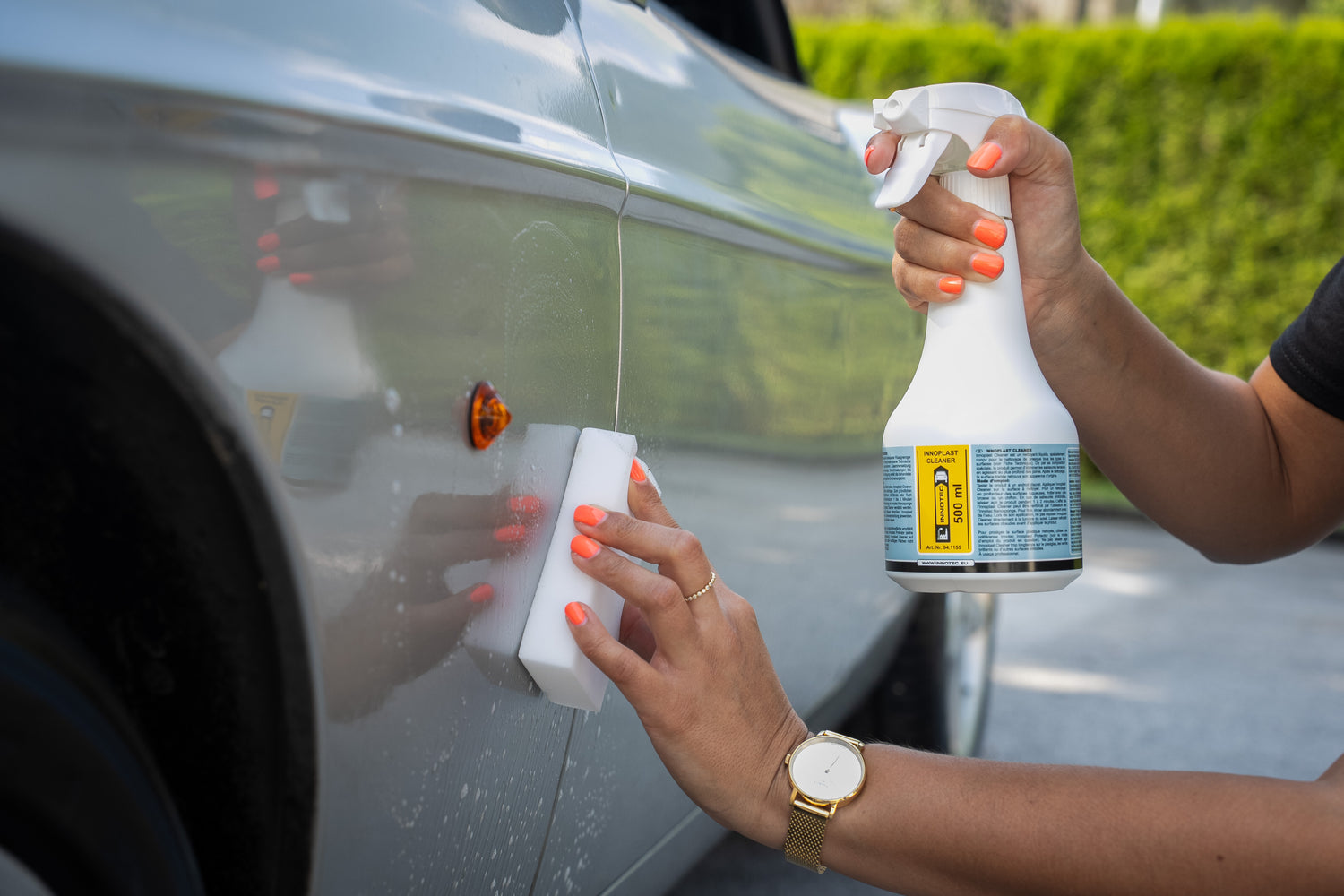- Innoplast Cleaner auf Nanosponge aufsprühen und die Verschmutzung beseitigen (nicht in direktem Sonnenlicht / auf warmen Oberflächen verwenden)