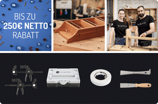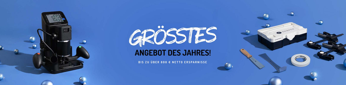 Jetzt zur Weihnachtszeit: Bis zu 800 € netto auf ausgewählte Shaper Origin Pakete sichern und neue Möglichkeiten in die Werkstatt holen!
