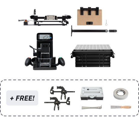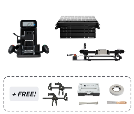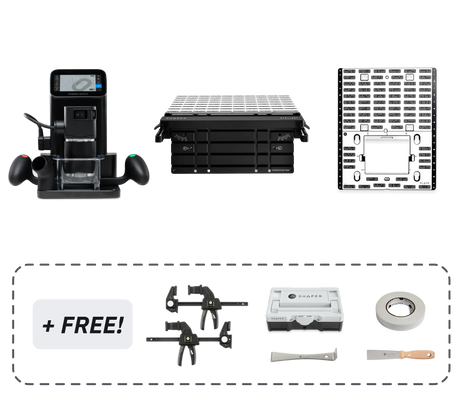SET: Shaper Origin + Benchpilot + Workstation + Werkstückträger-Upgrade-Kit + Plate + Kantenanschlag