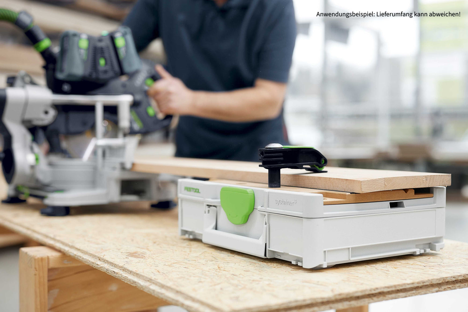 - für lange Werkstücke kann ein zweiter Systainer der gleichen Höhe (SYS3 M 112 oder SYS 1 T-LOC) genutzt werden