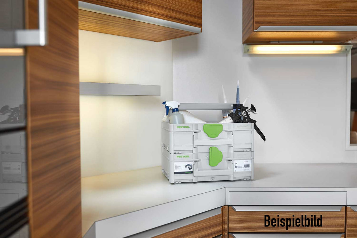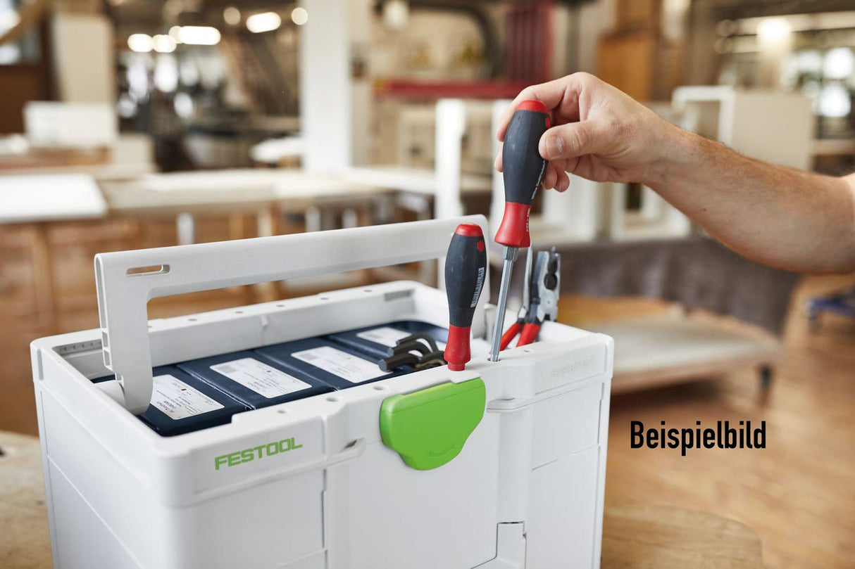 Oben offen, auf das Wesentliche reduziert und ausgelegt für den schnellen Zugriff auf Handwerkzeug, Verbrauchsmaterial und Zubehör. Und perfekt passend zum Systainer-System: Systainer³ ToolBoxen sind untereinander sowie mit allen Systainer-Generationen und Absaugmobilen koppelbar.