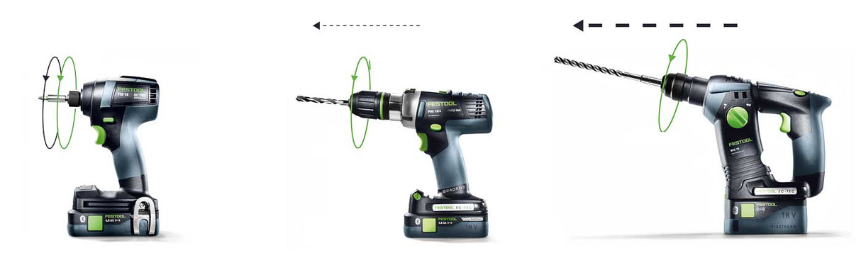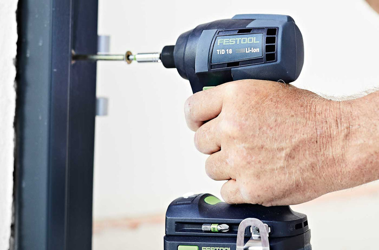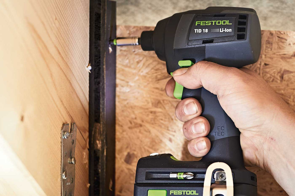 Pure power for every application paired with indestructible robustness and endurance. With the TPC 18/4 cordless impact drill and the TID 18 cordless impact driver, you're equipped for every drilling and screwdriving task. The TPC 18/4 impresses with the best gearshift concept you've ever used. Numerous attachments, combined with perfectly coordinated accessories, make the QUADRIVE an unsurpassed impact drill for a wide variety of applications. And what about dangerous wrist twisting when the tool suddenly locks? The intelligent KickbackStop minimizes the risk of that happening. The TID 18, on the other hand, is a compact powerhouse with an extremely robust impact mechanism and an enormous service life. In addition, the TID 18 with ¼" tool holder only turns the screw – not your wrist: the tangential impact mechanism ensures this without any energy-sapping back torque. Both models feature a brushless and therefore maintenance-free EC-TEC motor – which, in conjunction with the battery pack, ensures maximum endurance. For worry-free everyday use, the cordless screwdriver and battery pack are fully covered by Festool Service.